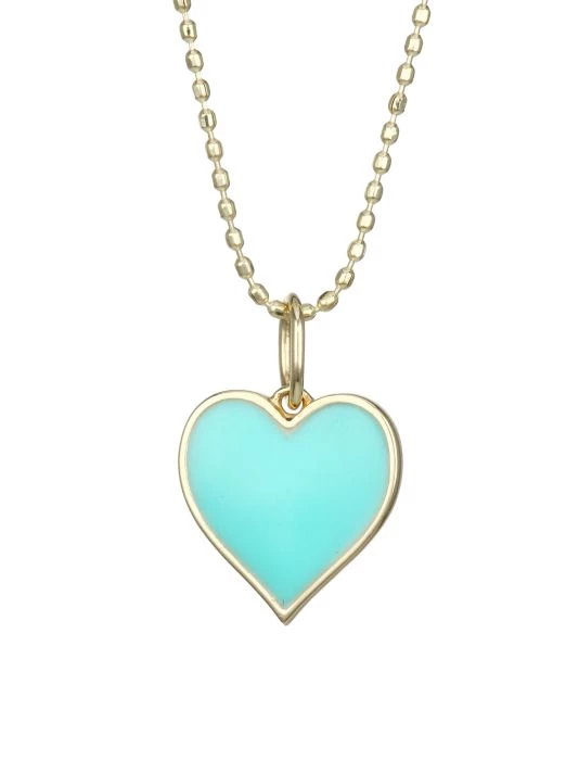 A glossy heart pendant centers a beaded gold chain for a touch of romance to your look.