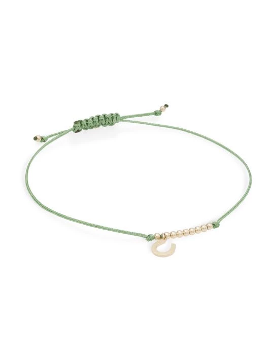 Adjustable tennis bracelet with yellow gold beads and defining horseshoe charm detail.