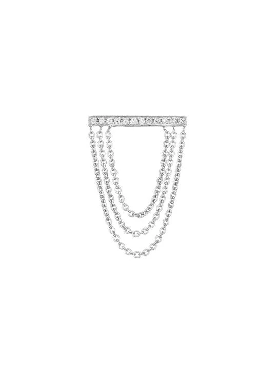 Triple tier white gold single earring with a pavé diamond finish.