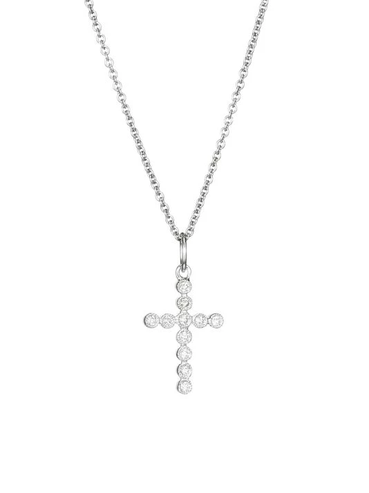A beautiful cross pendant encrusted with diamonds elevates this cable chain of 14k white gold.