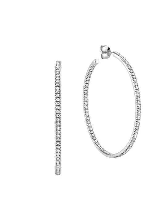 Luminous white gold hoops inset with diamond pavé emits sparkle at every angle.