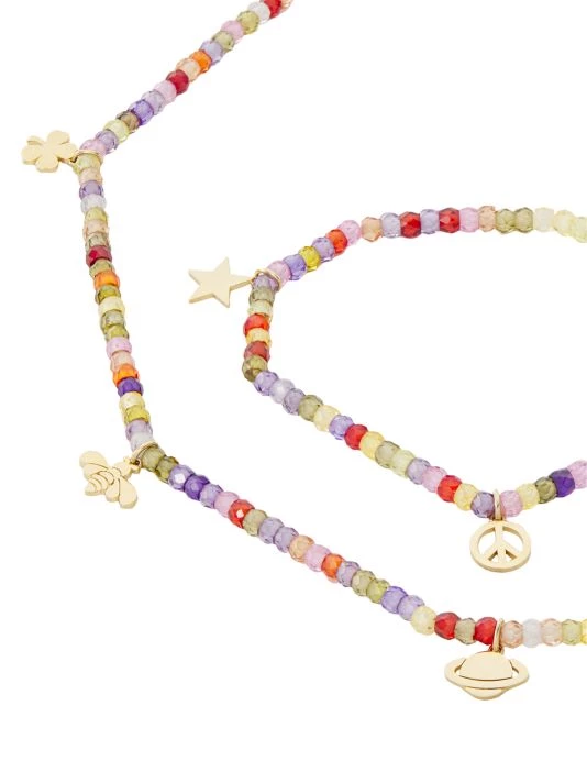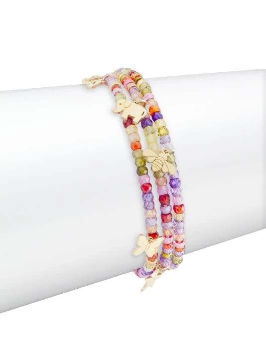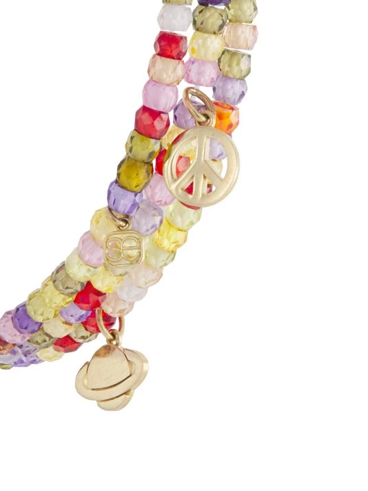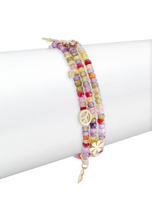 Composed of faceted multicolored beads, this Sydney Evan triple-wrap bracelet is adorned with 14K-yellow-gold charms sculpted in a variety of motifs.Founded by Rosanne Karmes in Los Angeles in 2001, the jewelry brand is celebrated for its whimsical designs often inspired by spirituality, culture, and travel.