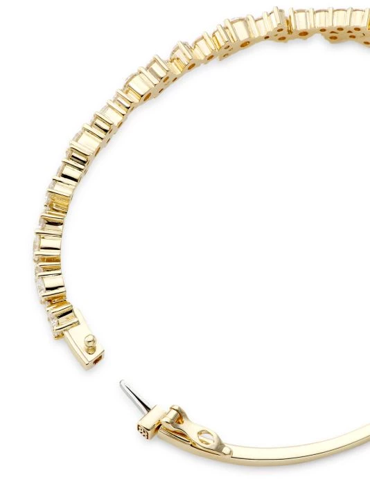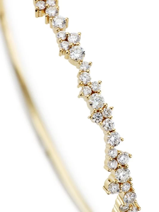 Made from 14K yellow gold, Sydney Evan’s chic bangle sparkles with scattered round white diamonds at the face.