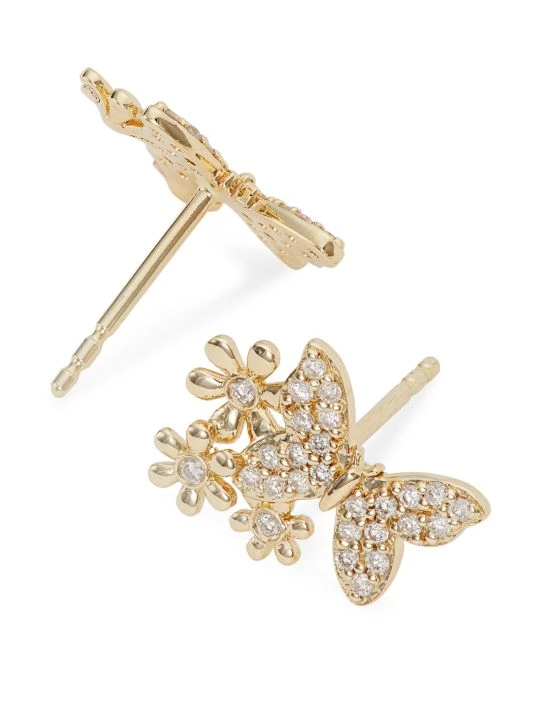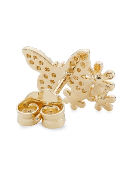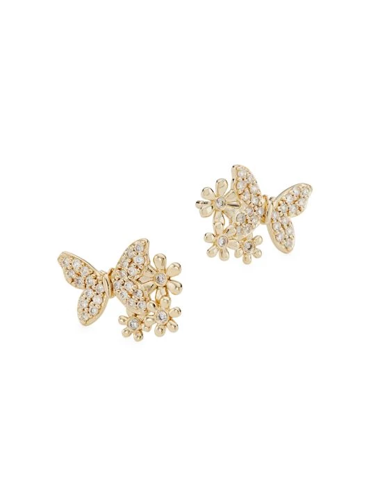 ONLY AT SAKS. Sculpted in the shape of butterflies and daisies, Sydney Evan’s stud earrings are crafted of polished 14K yellow gold embellished with shimmering white diamonds. This charming pair captures the Los Angeles-based brand’s playful aesthetic.