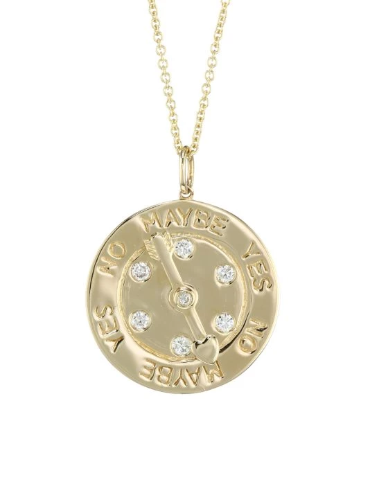 A whimsical “charm meter” shines from a delicate chain in polished gold with diamond accents.