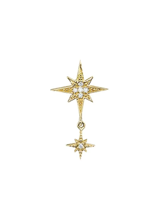Polished gold starburst single stud set with five brilliant-cut diamonds dangling a miniature starburst drop.
