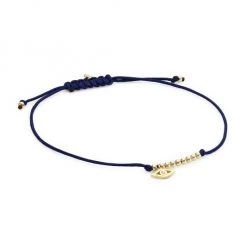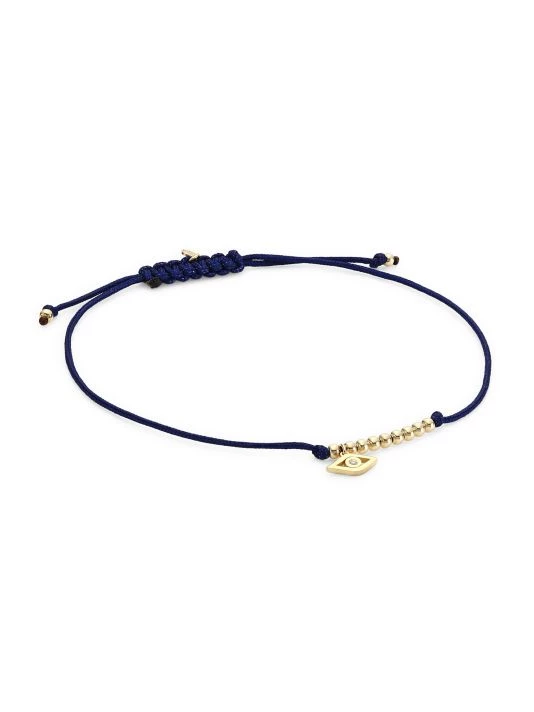 A delicate diamond-studded 14K gold evil eye charm adds sparkle to this knotted cord bracelet accented with gold beads.