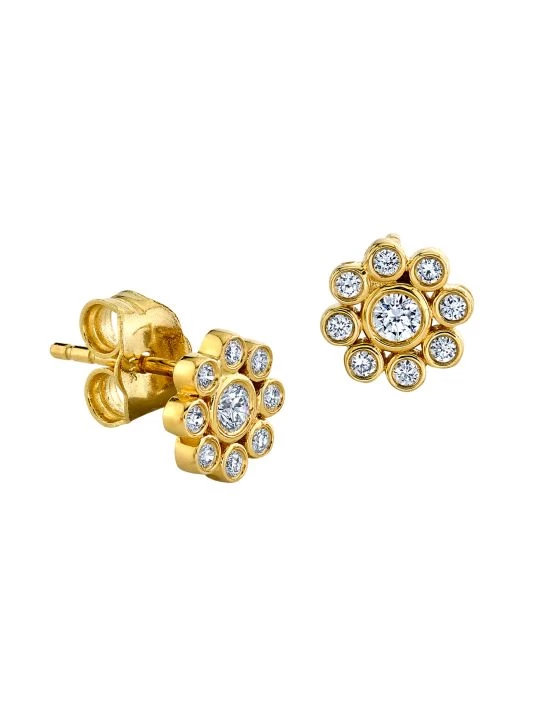 Playful and elegant, this flower single stud earring is crafted with nine brilliant-cut round diamonds in bezel settings.