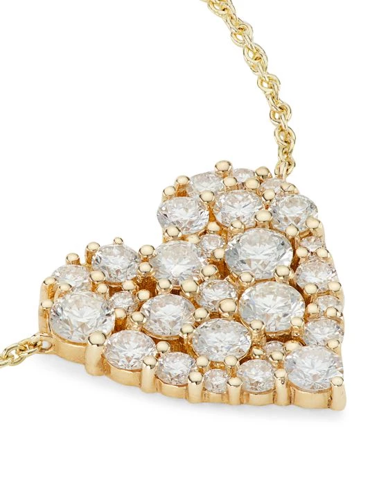 ONLY AT SAKS. Crafted of 14K yellow gold, Sydney Evan’s necklace features a heart pendant encrusted with shimmering round white diamonds. This eye-catching charm is fixed to a fine cable chain that secures with a lobster clasp.