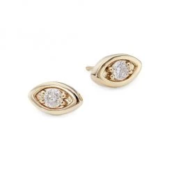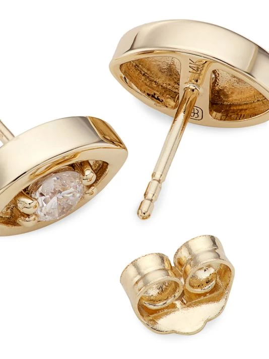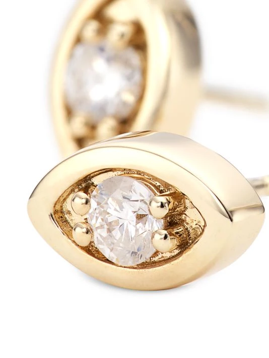 Sydney Evan’s 14K-yellow-gold evil-eye stud earrings are set with sparkling round brilliant-cut white diamonds. Completed with a polished finish, this whimsical pair secures with a post back.