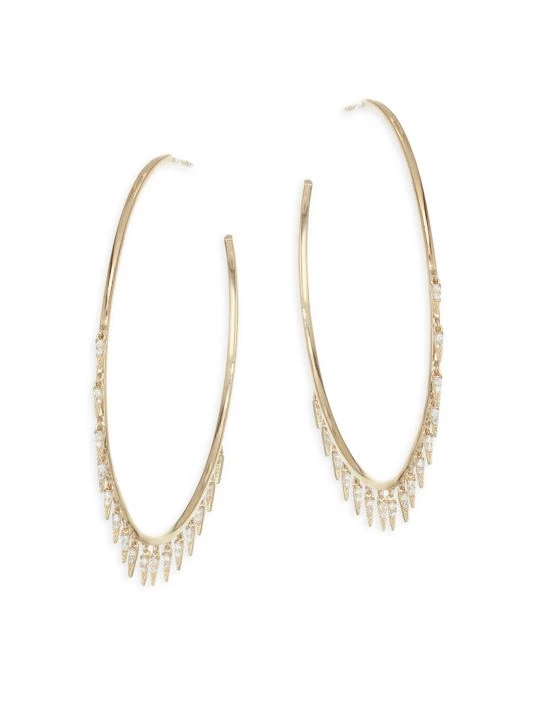Elegant yellow gold hoops finished with diamond fringe detail.