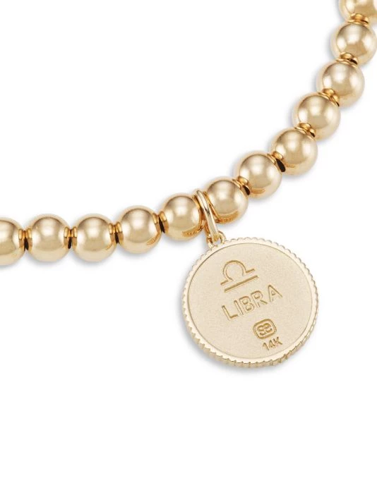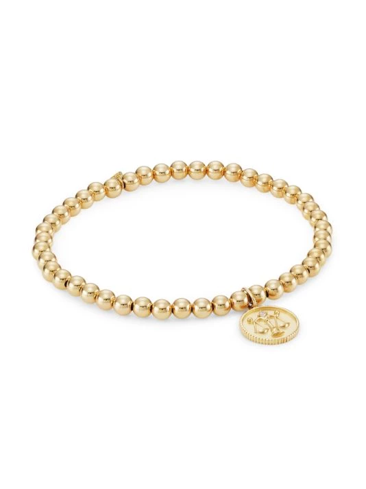 Composed of 14K yellow gold beads strung on a stretch cord, this bracelet features a Libra medallion studded with a single brilliant-cut white diamond.