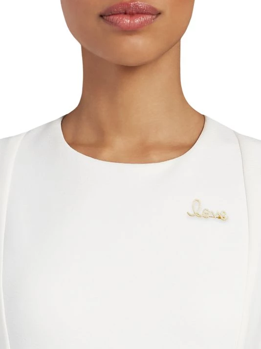 Charming brooch featuring diamond pavé “love” cursive text.