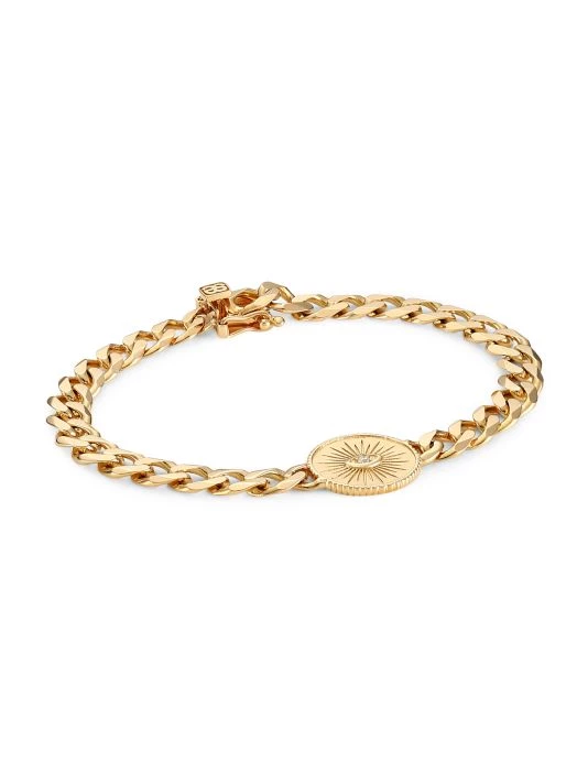Dazzling yellow gold chunky link bracelet features a marquis eye coin centered with a round white diamond.