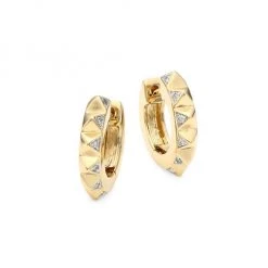 Geometric huggies gleam in 14K yellow gold crafted into a pyramid design accented with 12 brilliant round diamonds.