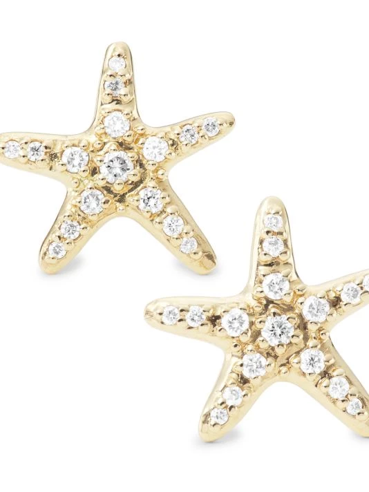Sydney Evan’s 14K-yellow-gold starfish stud earrings are encrusted with sparkling white diamonds. Completed with a polished finish, this playful pair captures the jewelry label’s whimsical aesthetic.