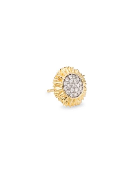Sculpted in the shape of a sunflower, this charming stud earring is embellished with sparkling pavé white diamonds.