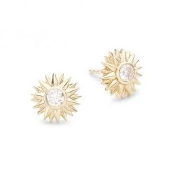 ONLY AT SAKS. Sculpted in the shape of sunflowers, Sydney Evan’s stud earrings are crafted of polished 14K yellow gold. Petite round bezel-set white diamonds add radiant sparkle to this charming pair.
