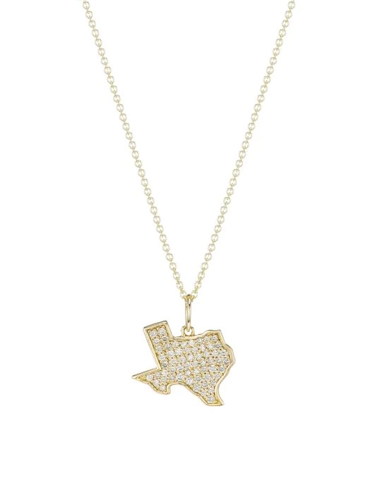 Crafted of 14K yellow gold, this necklace features a white-diamond-encrusted Texas-shaped pendant suspended from a fine cable chain.