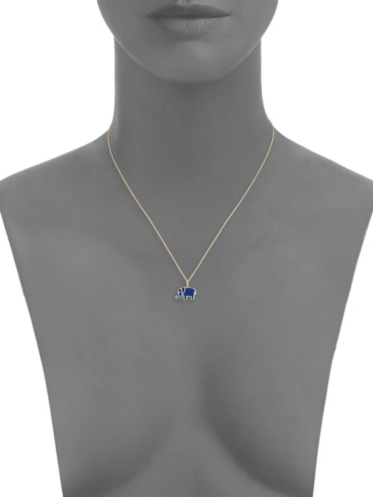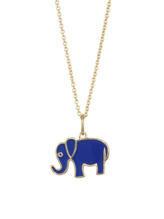 Adorable enamel elephant pendant suspended from a fine link chain.