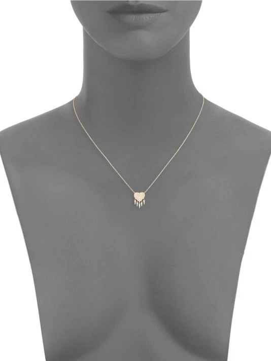 Dazzling diamonds enhance this lovely 14K yellow gold heart-shaped necklace.