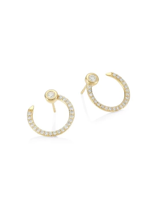 Elegantly shaped diamond pave hoop earrings with feature diamond nail head.