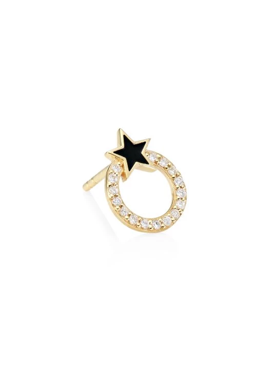 Circular in design, pavé diamonds and a striking enamel star make this earring a statement piece.