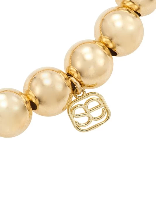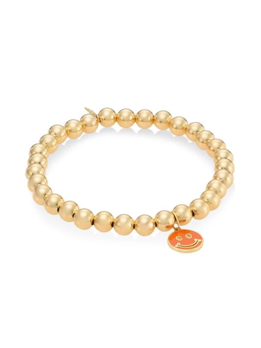 An enamel smiley face charm adorns this beaded bracelet, crafted from polished 14K yellow gold.