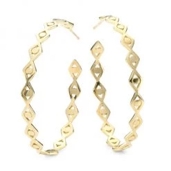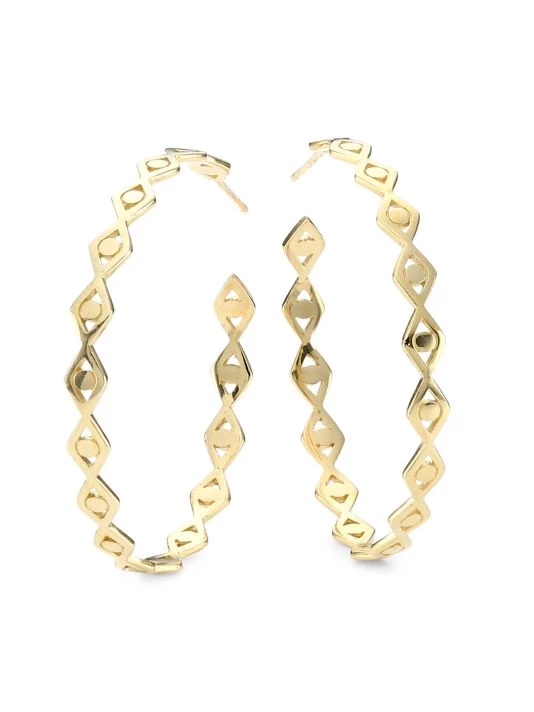 Gleaming yellow gold is crafted into an evil eye link forming these timeless hoops, the mystic symbol of protection.