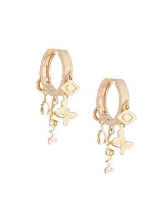 Luminous 14K yellow gold huggie hoop earrings accented with a medley of charms.