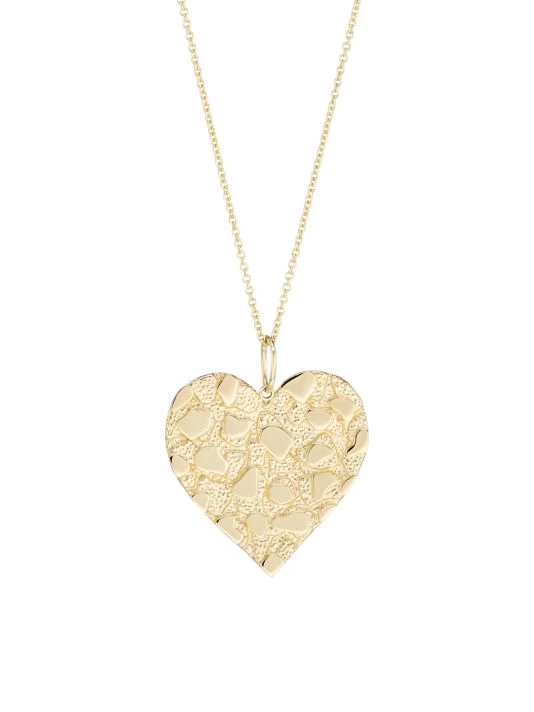 Featuring a heart pendant with a gold-nugget-inspired textured finish, this stunning Sydney Evan necklace is crafted of 14K yellow gold.
