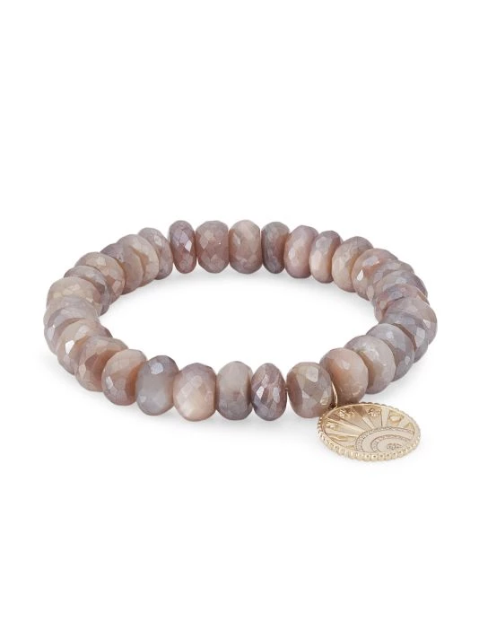 Faceted stones frame a center sunburst pendant, studded with brilliant round-cut diamond pavé.
