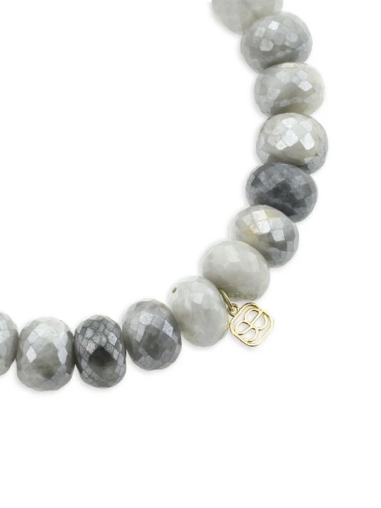 Faceted silverite beads pair with a sapphire-studded charm in this beautiful stretch bracelet.