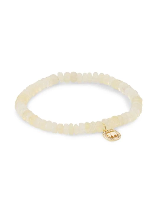 Composed of faceted welo opal beads, this bracelet features a charming 14K yellow gold cutout elephant charm embellished with sparkling pavé white diamonds.