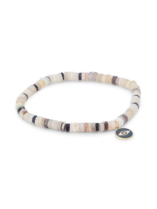 An enamel Evil Eye charm centers this stretch beaded bracelet featuring luminous grey opals.