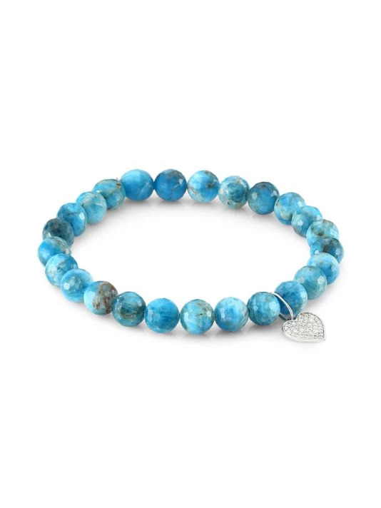 Sparkling blue apatite faceted rondelle beaded bracelet with a diamond-set white gold heart charm.