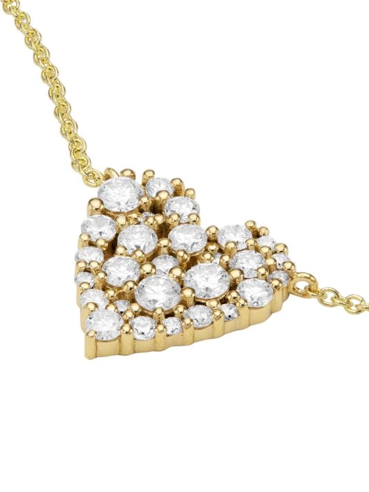 Featuring a diamond-encrusted heart pendant, Sydney Evan’s small Cocktail necklace is made of 14K yellow gold.