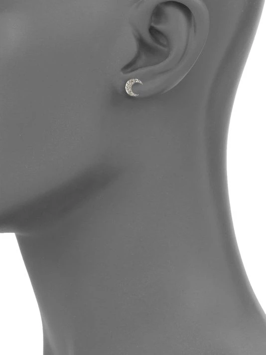 From the Celestial Collection. A white gold crescent moon is traced in sparkling diamonds for an intriguingly beautiful stud earring that looks chic on its own or paired with another earring.
