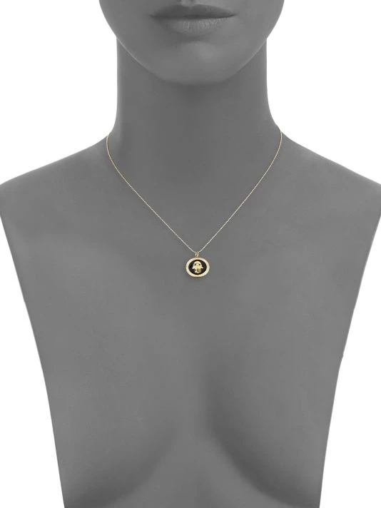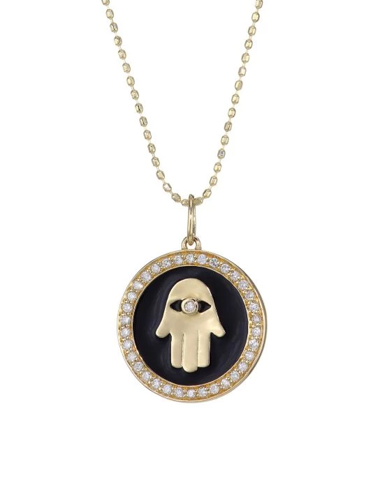 Pavé diamonds enhance the hamsa medallion on this 14K gold chain necklace.