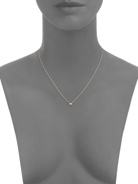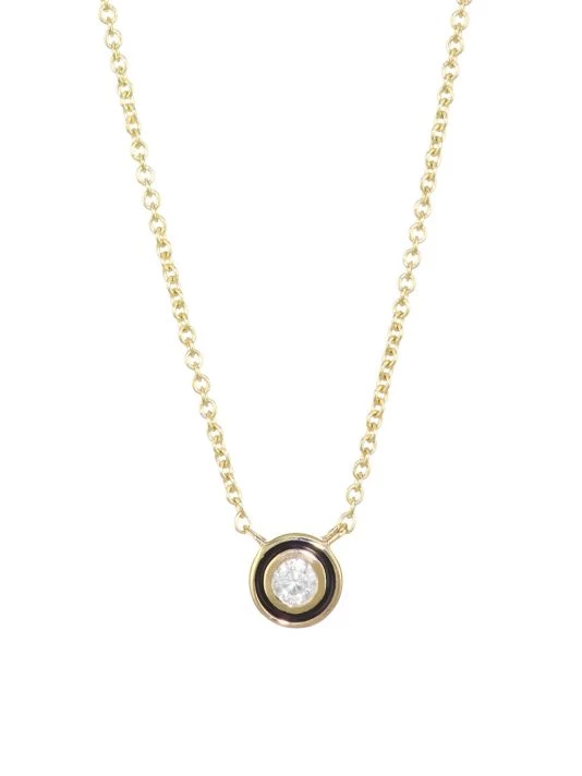A single diamond is haloed by black enamel in this delicate 14K yellow gold pendant necklace.