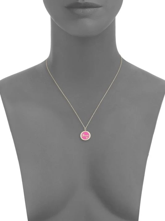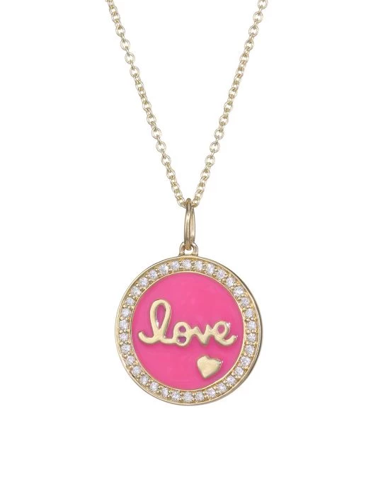 A pavé diamond border sparkles on this medallion pendant with Love script.