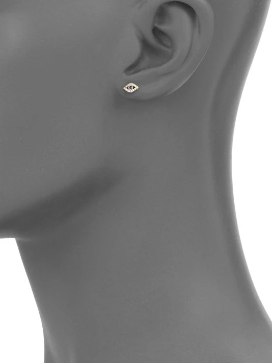 From the Devout Collection. This single stud dazzles in a mysterious evil eye design, frosted in diamonds and a brilliant sapphire.