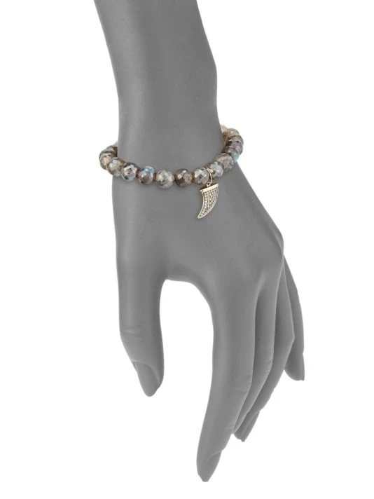 Sparkling faceted bead bracelet in yellow and black gold accented with diamond set horn charm.