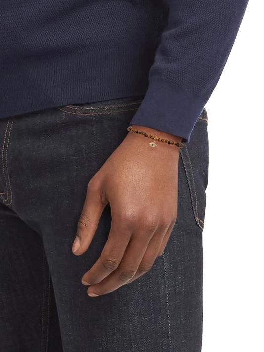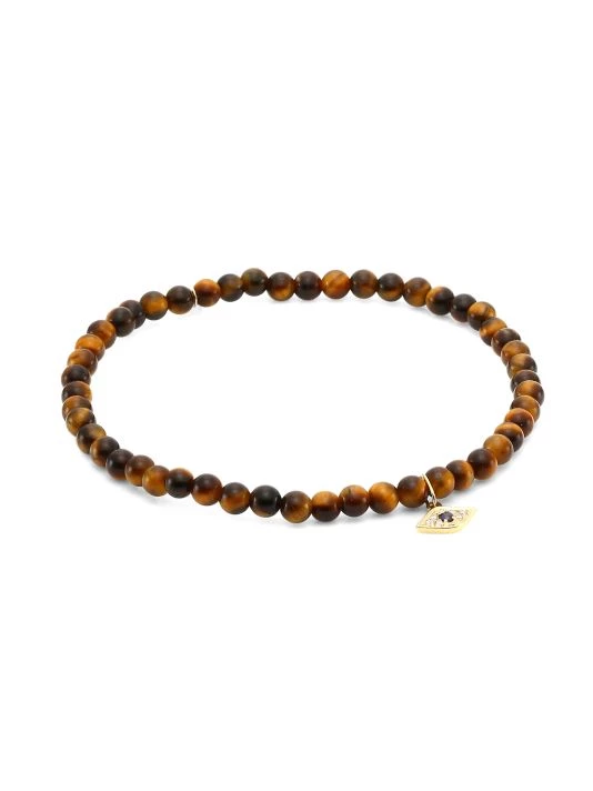 From the Love 18 Collection. This tiger bead bracelet features a diamond embellished pendant with a sapphire center.