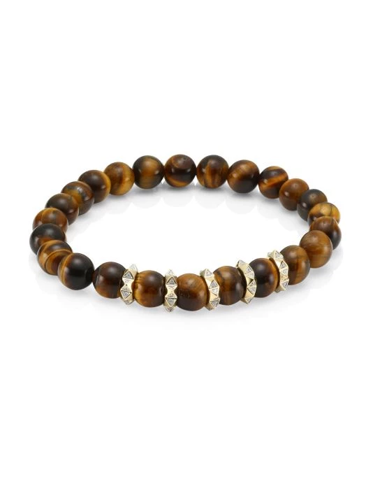 Boho tiger eye beaded bracelet with delicate diamond details.