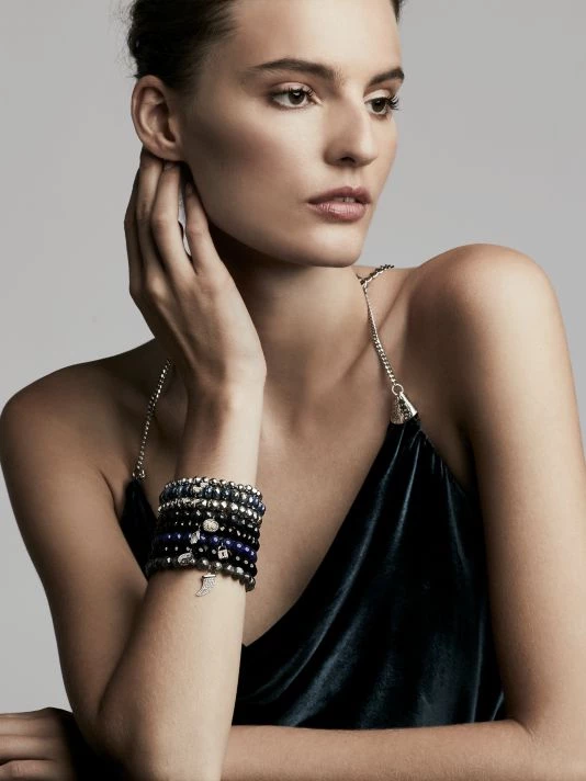 Glittering faceted bead bracelet with yellow gold diamond spacer.