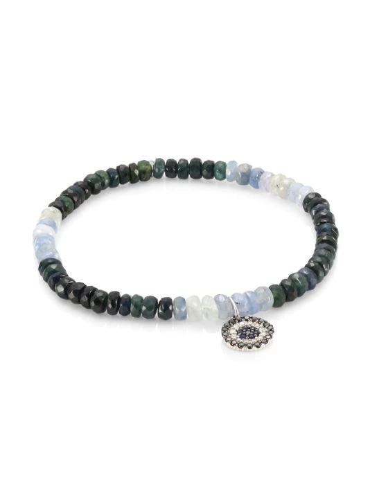 Rugged boho beads lend artisanal accents to this evil eye pendant bracelet.