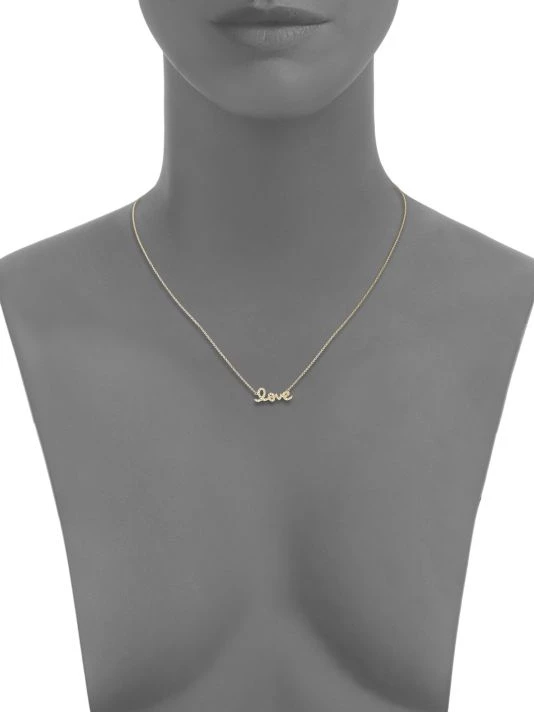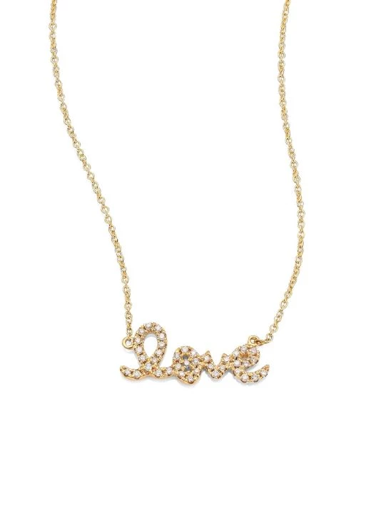 From the Words Collection. A message of love, demurely depicted in a graceful script of diamonds, at the center of a 14k yellow gold chain.